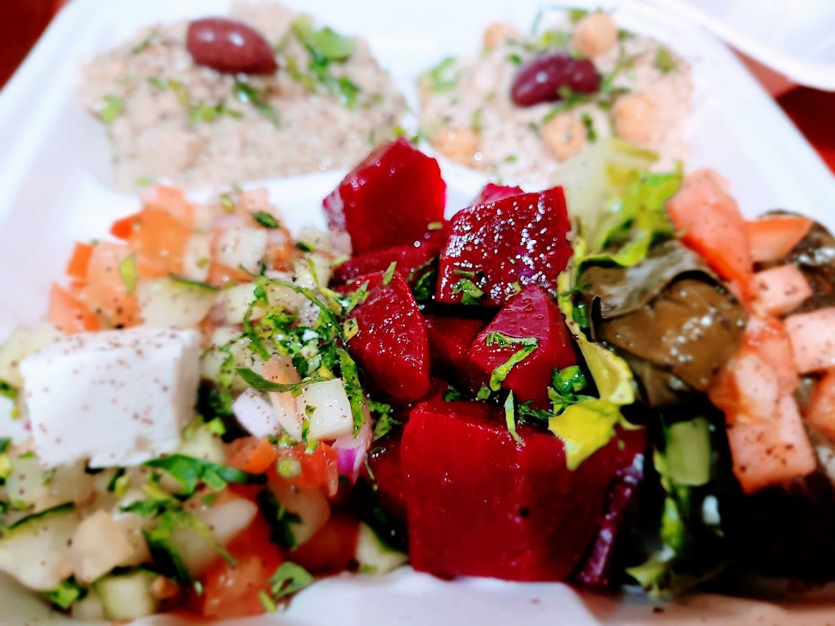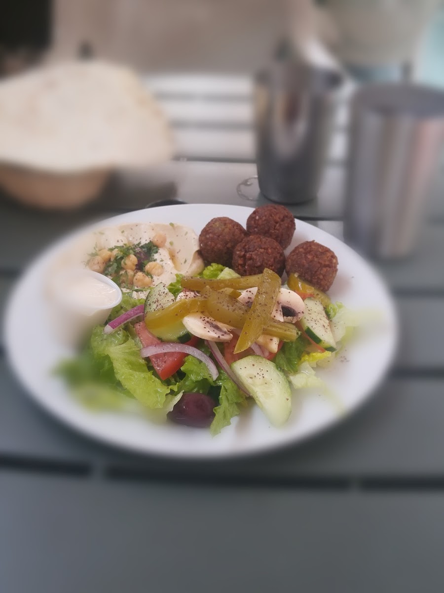 The menu here leans into approachable classics like falafel, fresh homemade pita, and an array of salads, alongside more distinctive items such as the Lahmbajin Pizza topped with ground lamb and the merguez sausage platters. Portions encourage sharing, with a handful of cold mezzes and warm dishes that make it easy to assemble a mix-and-match spread. Whether you’re dropping in for a falafel sandwich on a quick lunch break or lingering over a platter of assorted salads and homemade dips, the food offers consistently fresh, well-prepared flavors rooted in traditional recipes.